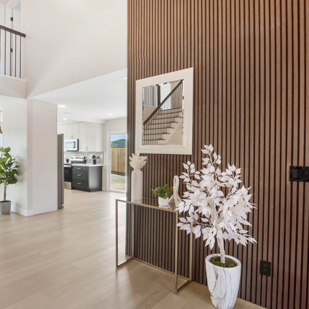 Hi there! Thank you for taking the time to leave a review. We're so happy to hear that you love the quality of our TriVeneer™ Walnut acoustic panels. It's great to hear that they were able to transform your entryway and provide sound dampening. We're always striving to create products that not only look great but also serve a practical purpose. Thank you for choosing TriVeneer™ for your project!
